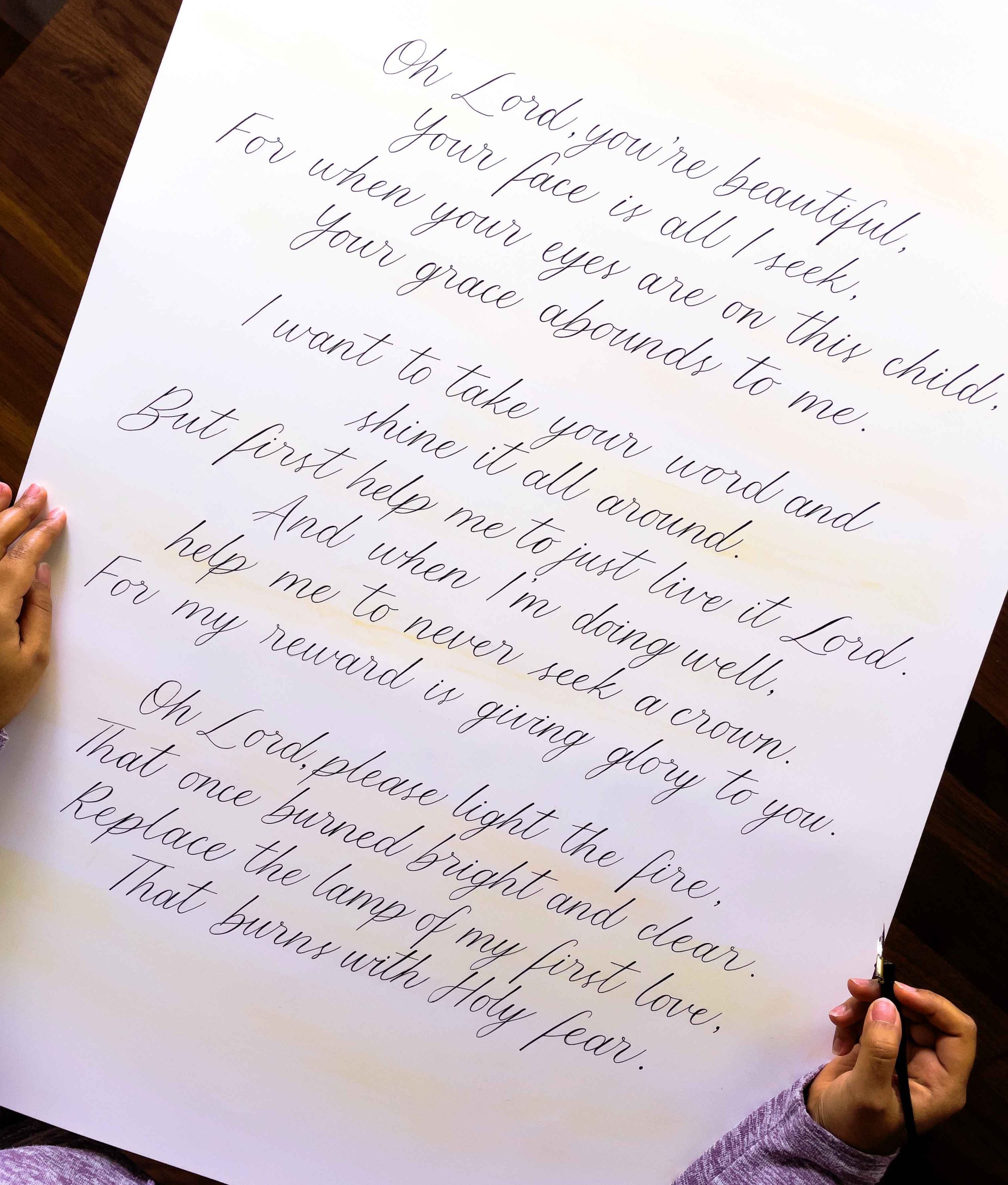 “Joyna created a beautiful piece of art to display on my wedding day. She hand painted scripture and created a stunning floral design that fit perfectly with our wedding aesthetic. It was evident that the piece was created with great care and attention to detail. We currently have her art on display in our home.